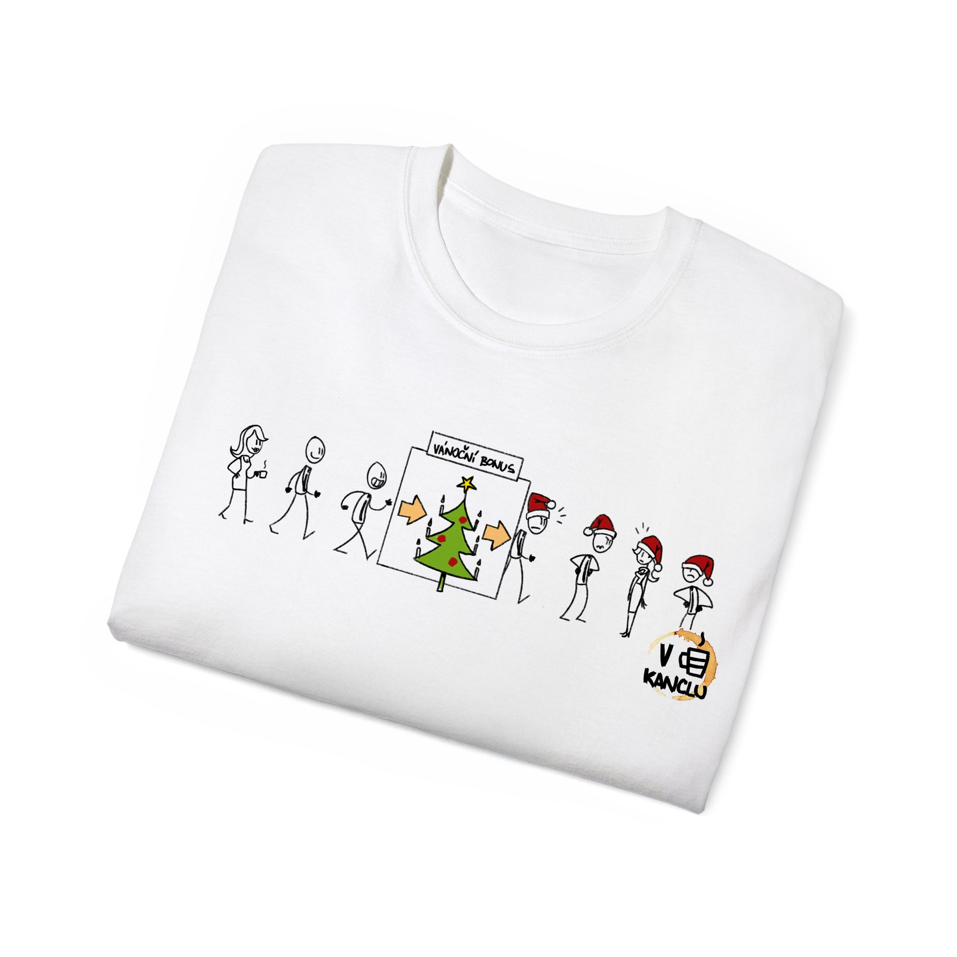 Unisex bílé tričko s potiskem 'Vánoční bonus'.
